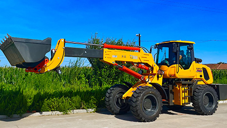 連接復合動作一拖二操作手柄,簡介易操作由于它具有共同的結構,前端是裝載設備,后端為發掘設備。在施工時,操作手只需求翻滾一下座椅,就可以結束從裝載機到發掘機的改動